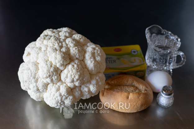 Соберём ингредиенты для приготовления цветной капусты с сухарями и яйцами.