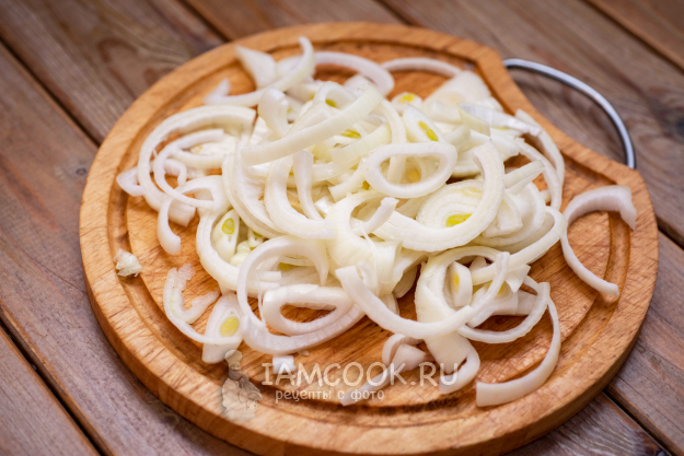 Лук нашинкуйте полукольцами.