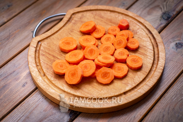 Морковь нарежьте кружочками или брусочками.