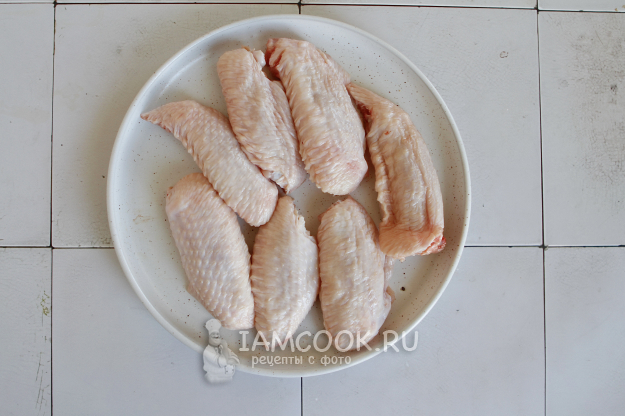 Куриные крылышки промойте под проточной водой и обсушите бумажным полотенцем.