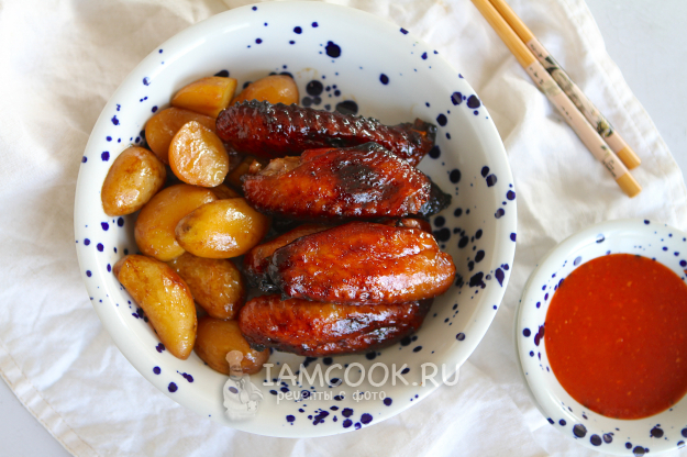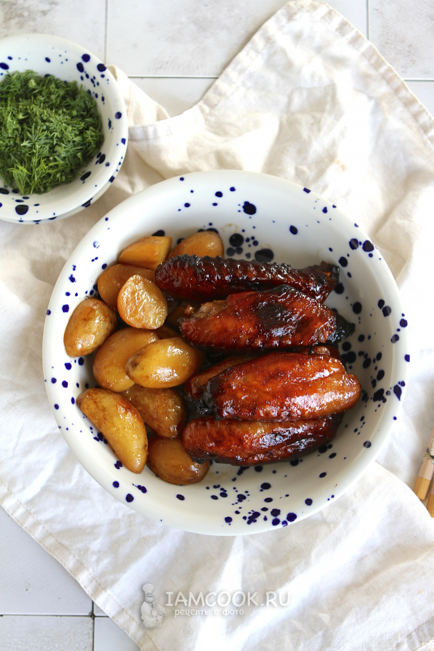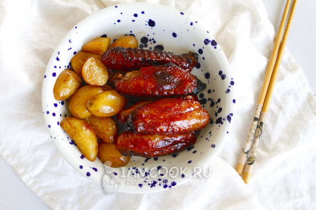 Ну вот, собственно, наши крылышки в медовом соусе с картошкой и готовы. Получилась такая красота и вкуснота, и дети остались довольны.