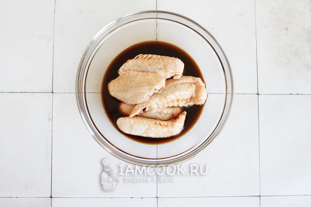 Залейте готовым маринадом крылья и уберите их в холодильник. В идеале, конечно, на пару часов, но вы ориентируйтесь по своему времени.