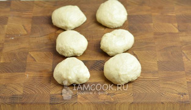 Разделите тесто на 4-6 частей и сформируйте шарики.