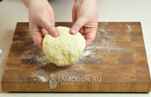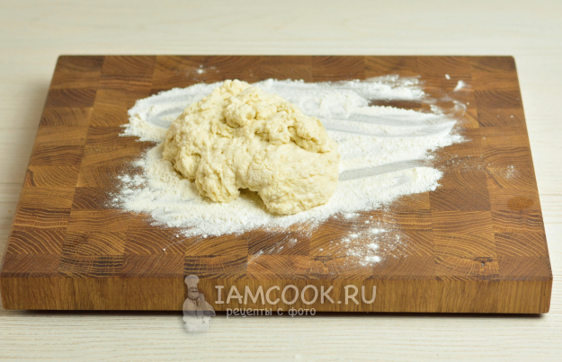 Добавляя постепенно оставшуюся муку, вымешивайте тесто руками, пока оно не соберётся в оформленный шар.