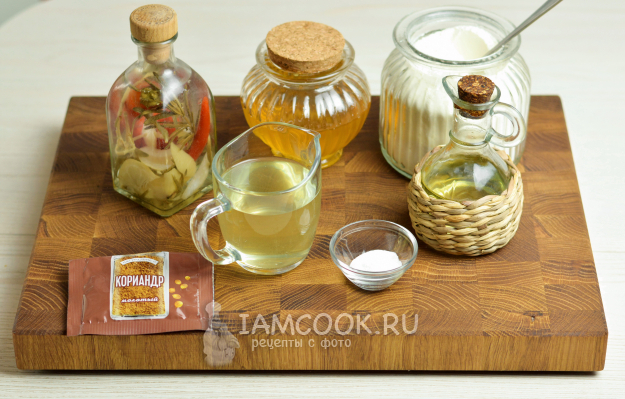 Соберите все необходимые продукты для приготовления постных лепёшек на рассоле в духовке.