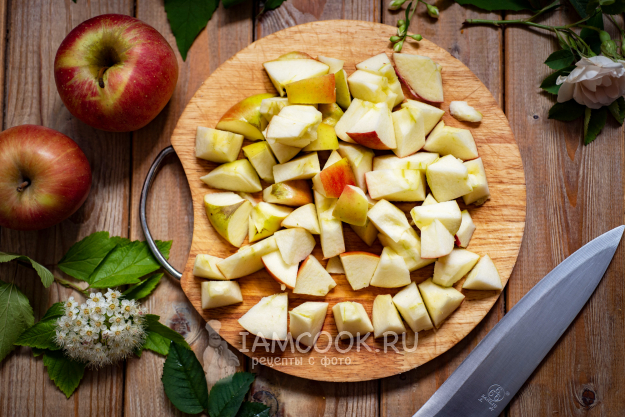 У яблок удалите сердцевинки и хвостики. Не надо срезать кожуру с яблок - в ней много пектина. Нарежьте яблоки небольшими кубиками.