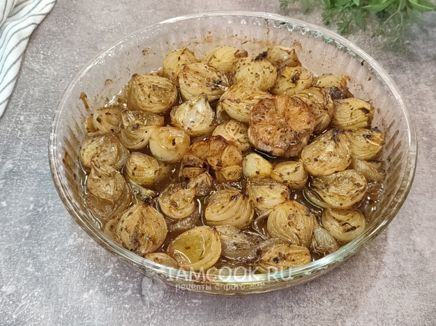 И спустя еще примерно 10-15 минут наш ароматнейший запеченный лук с чесноком в духовке готов!