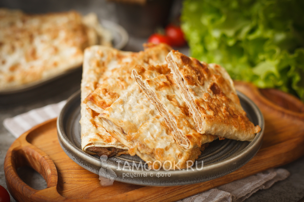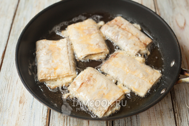 Сложите лаваш несколько раз так, чтобы начинка оказалась внутри.