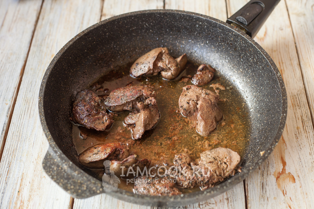 Первым делом нужно довести до готовности куриную печень. Здесь несколько вариантов. Например, можно сварить в воде или на пару до готовности, потом измельчить мясорубкой или блендером и смешать с мягким сливочным маслом. Или сделать как я – растопить сливочное масло на сковороде и обжарить печенку с двух сторон до легкой корочки, в процессе обязательно приправить и посолить. Жарить лучше под крышкой, чтобы не брызгало масло.