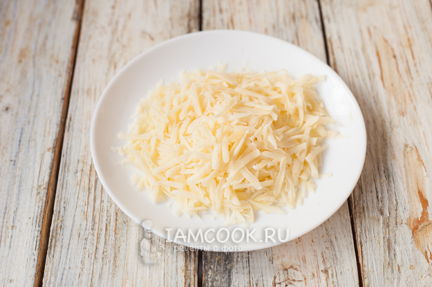 Сыр натрите так же как и яйца. Я взяла для закуски сыр сорта тильзитер, но вкусно получится и с другими видами, например, с сулугуни.