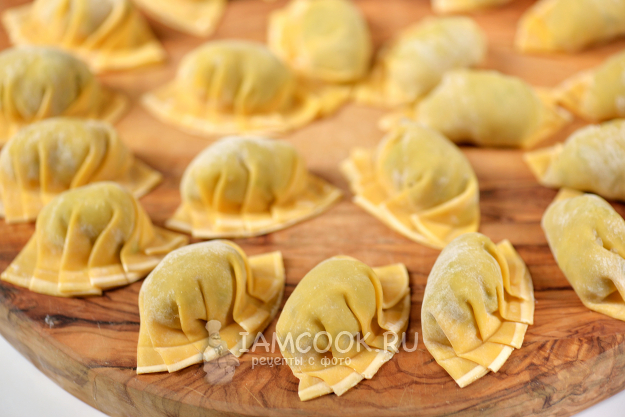 Для приготовления домашнего теста нужно соединить муку с теплой водой, замесить эластичное тесто и дать ему отдохнуть в пищевой пленке минут 30. Затем тесто тонко раскатать и вырезать заготовки круглой формы специальной вырубкой.
