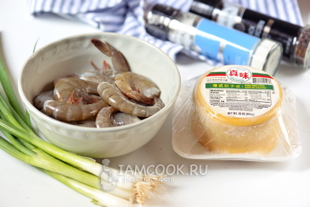 Подготовьте все необходимые продукты для китайских дамплингов с креветками.