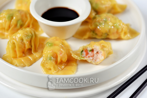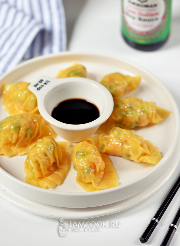 Полейте готовые китайские дамплинги с креветками кунжутным маслом и подавайте к столу с легким соевым соусом.