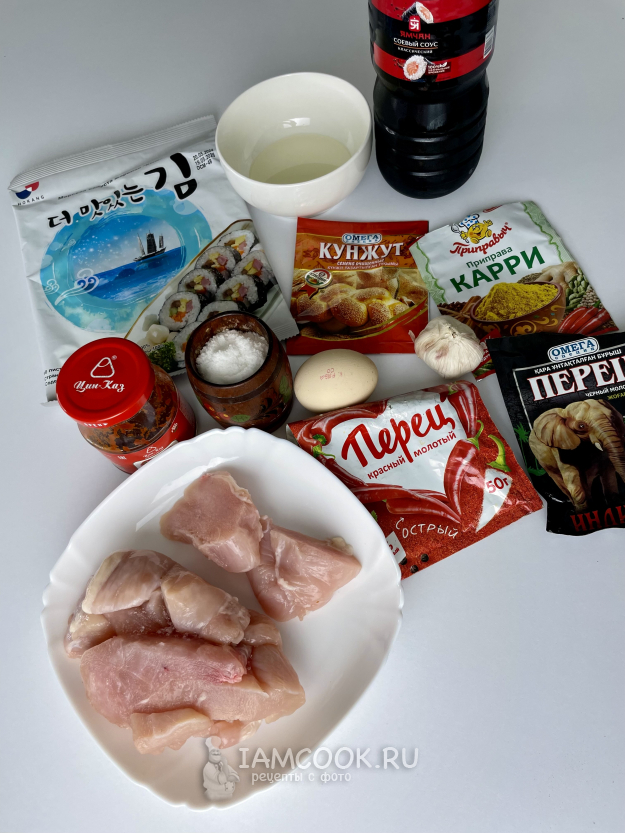 Для приготовления закуски из куриного филе с нори в духовке соберем все необходимые ингредиенты по списку.