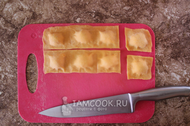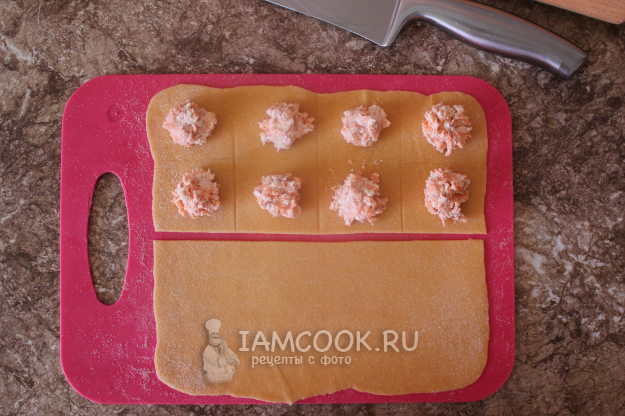 Сформируйте равиоли, при этом постарайтесь выпустить из-под теста воздух, а то заготовки надуются.