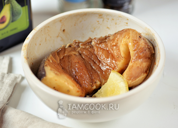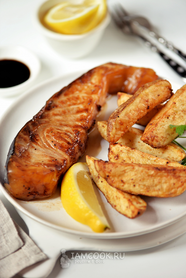 А пока положите осетрину в глубокую миску, добавьте соевый соус, приправу для рыбы, соль и перец по вкусу, а также щедро сбрызните рыбу лимонным соком. Обваляйте в маринаде и оставьте мариноваться на время, пока готовится картошка.