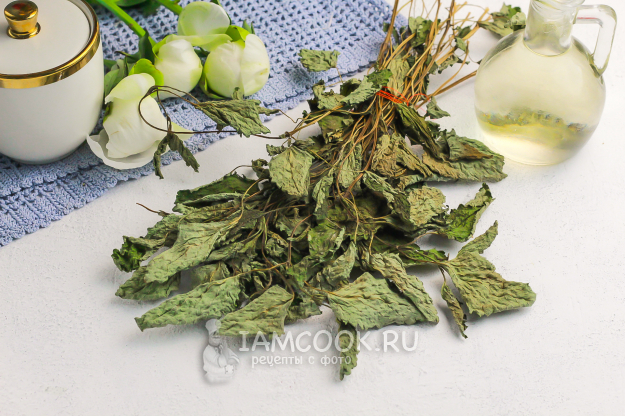 Вынесите на балкон или подвесьте в коридоре, кухне на 1-2 недели. В помещении должно быть сухо и не прохладно. Можно подсушить в течение нескольких дней и в духовке при минимальном нагреве, 60-70 градусов. Фактор отличной сушки мяты - ее рассыпчатость.