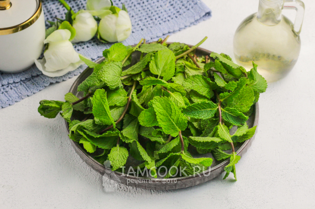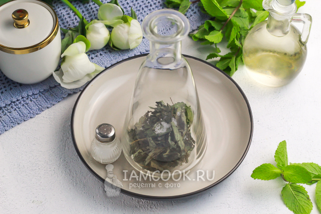 Мяту переберите, удалите поврежденные листья и стебли. Промойте в воде, обсушите бумажными салфетками.
