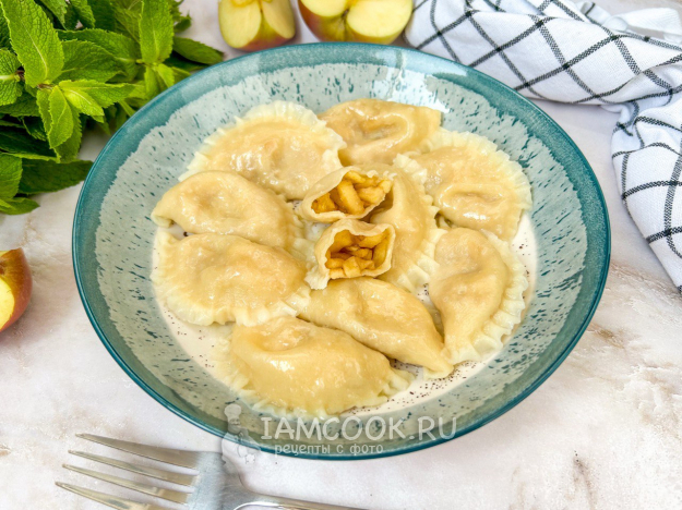 Соберите все необходимые ингредиенты для приготовления вареников с яблоком и корицей по списку.