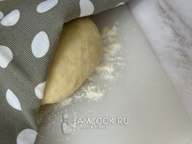 Накройте готовое тесто кухонным полотенцем и оставьте отдохнуть примерно на полчаса при комнатной температуре.