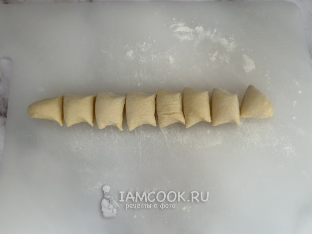 Раскатайте отдохнувшее тесто в длинную колбаску и нарежьте на не большие кусочки. Раскатайте каждый кусочек в кружочек диаметром примерно 7 см и толщиной примерно 2 мм. Или воспользуйтесь специальной формочкой для приготовления вареников.