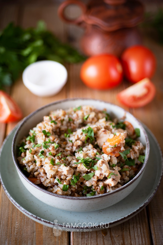 Готовую гречку с мясом разложите по тарелкам и подавайте к столу, чуть присыпав свежей рубленой зеленью.