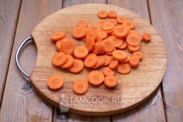 Морковь нарежьте кружочками.