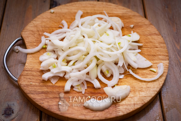 Лук нашинкуйте полукольцами.