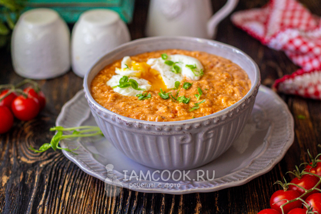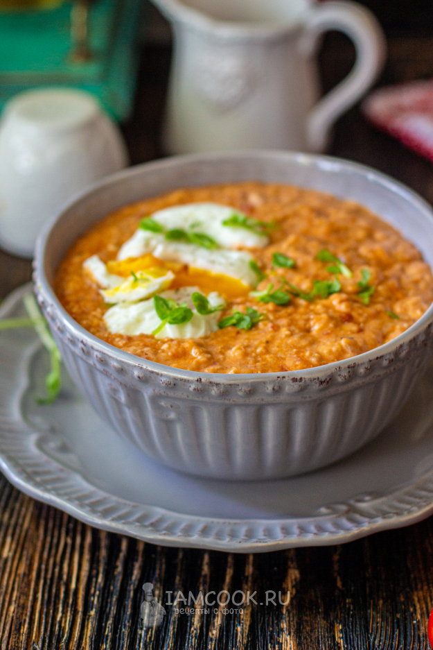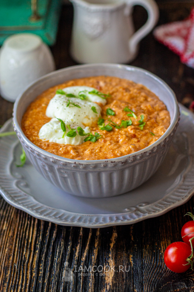 Томатная овсянка с яйцом готова!