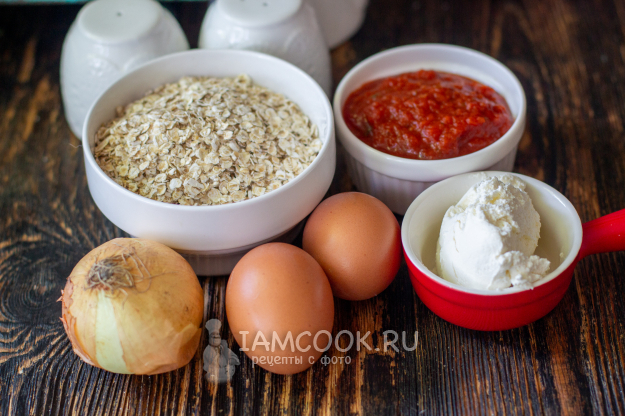 Соберите необходимые продукты для приготовления томатной овсянки с яйцом. Вам понадобится небольшой и простой набор продуктов, который есть в наличии у каждой хозяйки. В своём рецепте я использовала готовый томатный соус с базиликом, но если такого нет, то возьмите перетертые консервированные или свежие томаты. Творожный сыр придает каше сливочность и кремовую текстуру. Яйцо пашот можете приготовить по своему методу или заменить на отварное либо жареное яйцо.