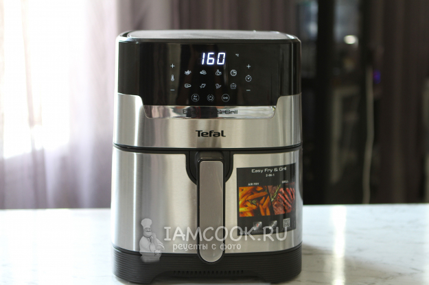 Отправляем форму с тестом в аэрогриль. Выставляем режим "Выпечка", температуру - 160 градусов, время - 45-50 минут. По истечении времени готовность проверяем шпажкой или зубочисткой, на выходе она должна быть сухой. Если шпажка не сухая, допекаем.