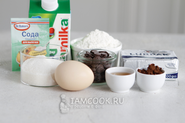 Соберите все продукты по списку и приступим к приготовлению шоколадного кекса в аэрогриле.