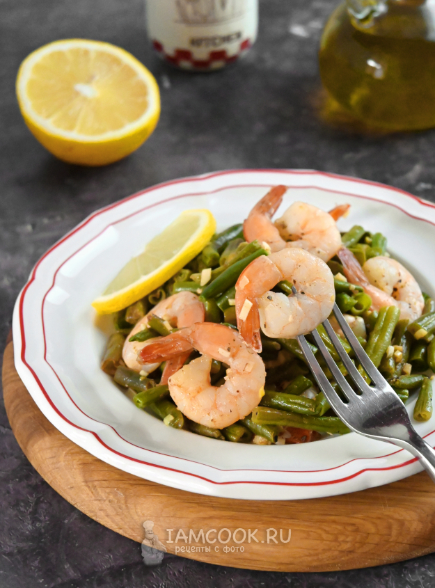 Стручковая фасоль с креветками готова. Подавайте блюдо горячим.