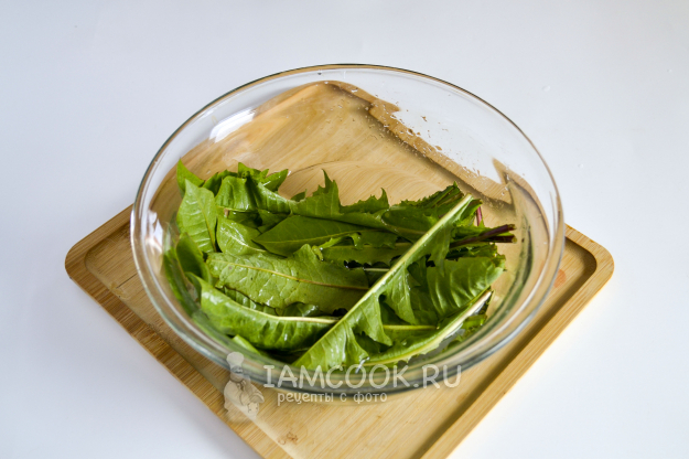 Чтобы убрать горечь с листьев одуванчика, положите их в миску и залейте подсоленной холодной водой на 30 минут.