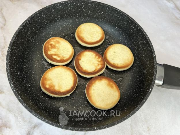 Хорошо разогрейте сковороду, добавьте подсолнечное масло и выложите заготовки теста на горячую поверхность.