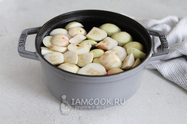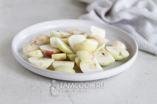 Яблоки промойте, обсушите. Разрежьте пополам или на четвертинки. Удалите семена и сердцевину.