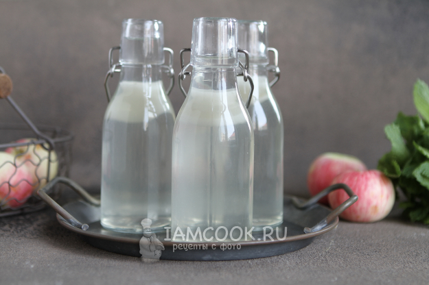 Яблоки и мяту выньте из кастрюли. Компот разлейте по бутылкам и охладите.