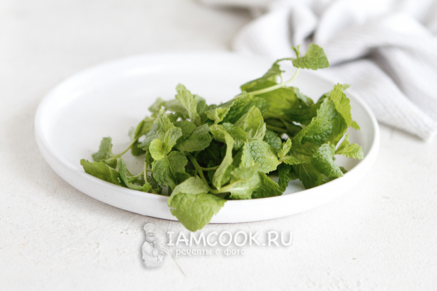 Мяту хорошо промойте под проточной водой и обсушите бумажным полотенцем.