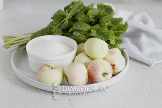 Продукты для приготовления компота из яблок с мятой - перед вами.