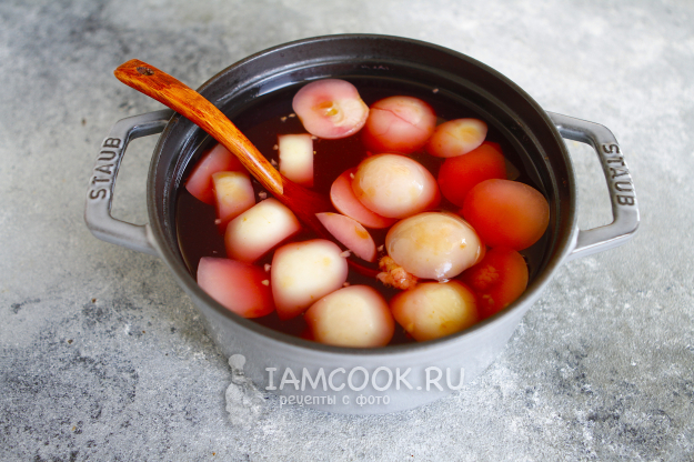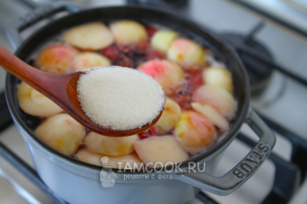 Всыпьте сахар по вкусу. Количество сахара для компота регулируйте по своему вкусу. Если хотите, не добавляйте вовсе сахар или используйте сахарозаменитель, мёд.
