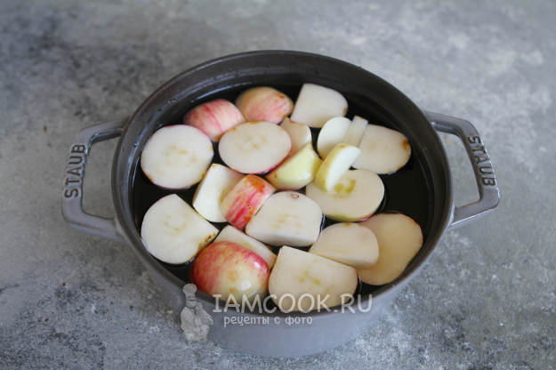 Наполняем кастрюлю водой и перекладываем в нее наши яблочки.