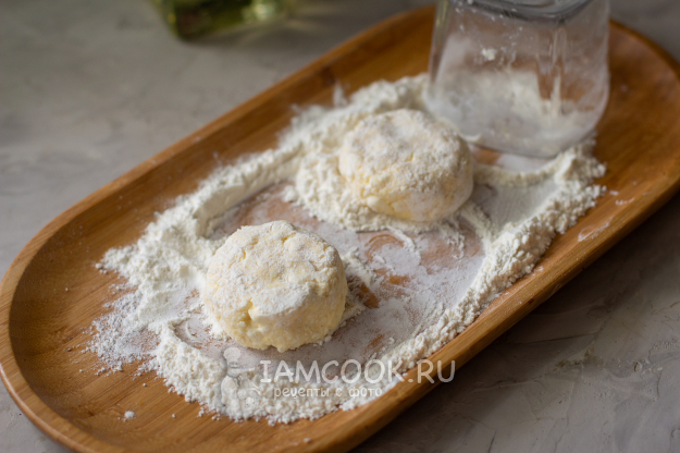 Сформируйте удобным для вас способом сырники, обваляйте их в муке.