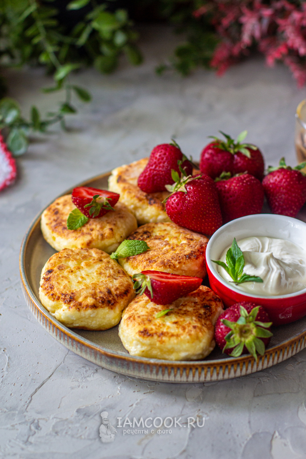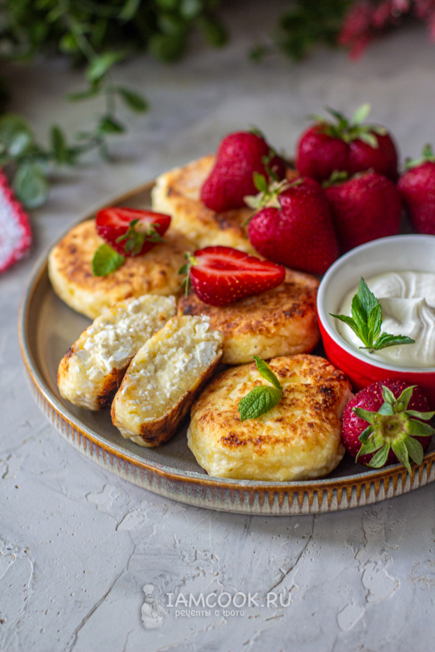 Наши сырники из творога и творожного сыра готовы! Подавайте их со сметаной, ягодами и медом. Приятного аппетита!