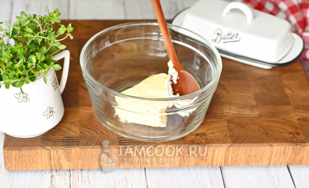 Масло достаньте из холодильника и оставьте примерно на полчаса, чтобы оно стало мягким.