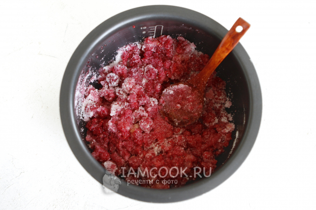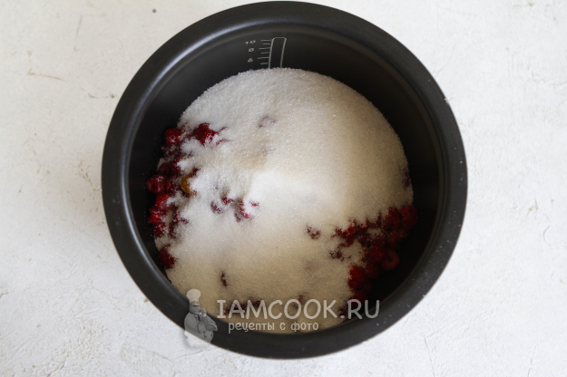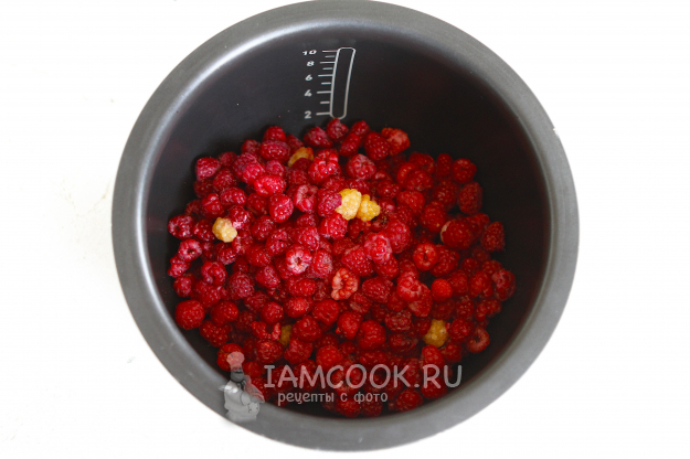 Переложите малину в чашу мультиварки.