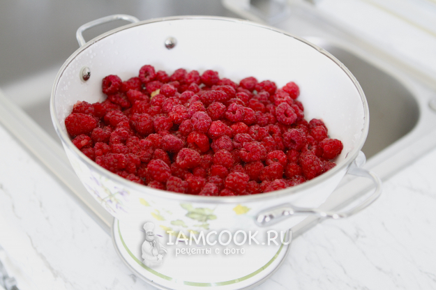 Ягоды малины переберите, удалите веточки, подножки. Промойте под проточной водой и откиньте на дуршлаг. Дождитесь, чтобы стекла вся жидкость.