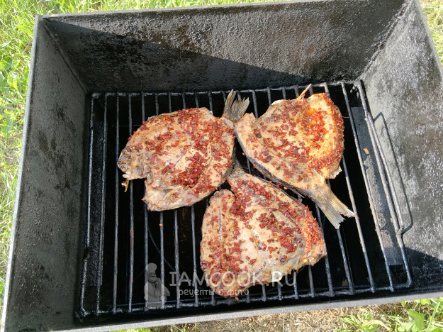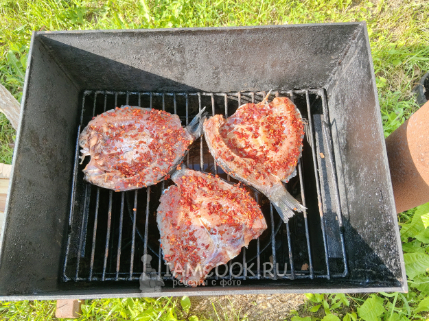 Для копчения рыбы костёр должен быть умеренным. После первого дымка из-под крышки надо засечь время. Некрупная рыбка готова через 30 минут. Можно подглядеть в коптильню и проверить готовность.
