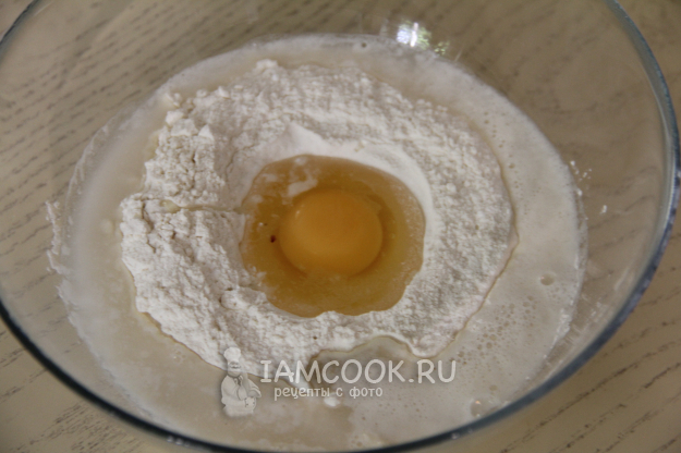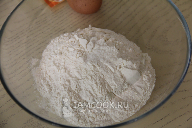Всыпать в миску муку, соль, сахар и разрыхлитель.