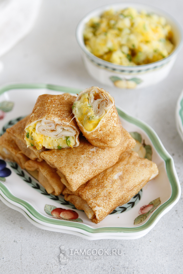 Блинчики я испекла заранее вот по этому рецепту. Тесто замешивала в планетарном миксере.