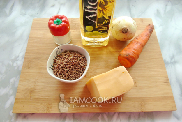 Затем добавьте нарезанный полутвердый сыр. Можно взять твердый, который хорошо плавится. Перемешайте сыр с гречкой до полного растворения. При необходимости прогрейте на слабом огне около минуты.